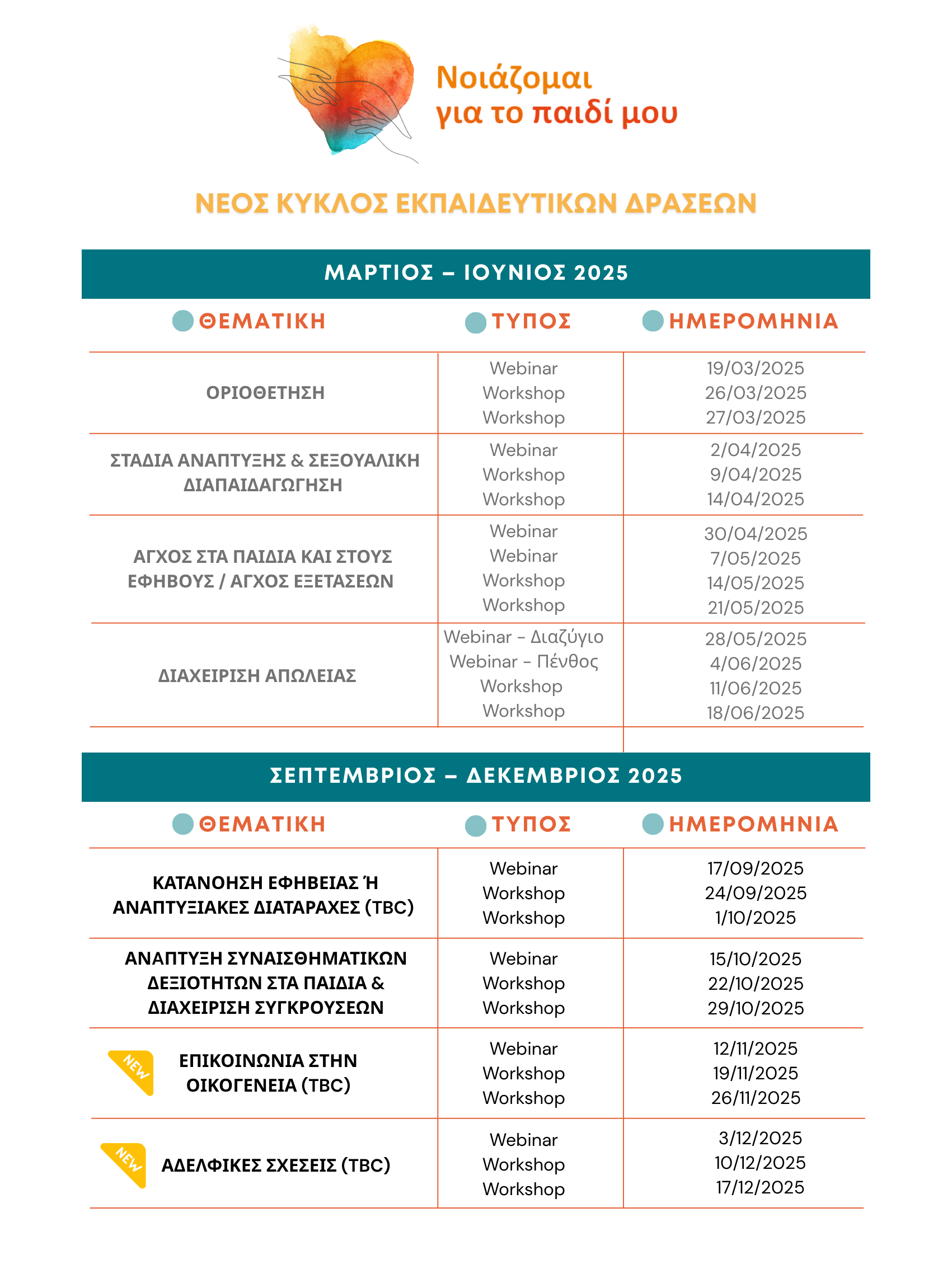 Νέος κύκλος Εκπαιδευτικών Δράσεων_Μάρτιος έως Δεκέμβριος 2025